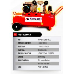 Compresor de aire 3HP bicilíndrico de 100 litros marca Shimaha...