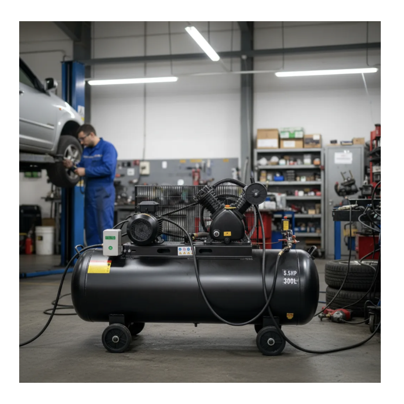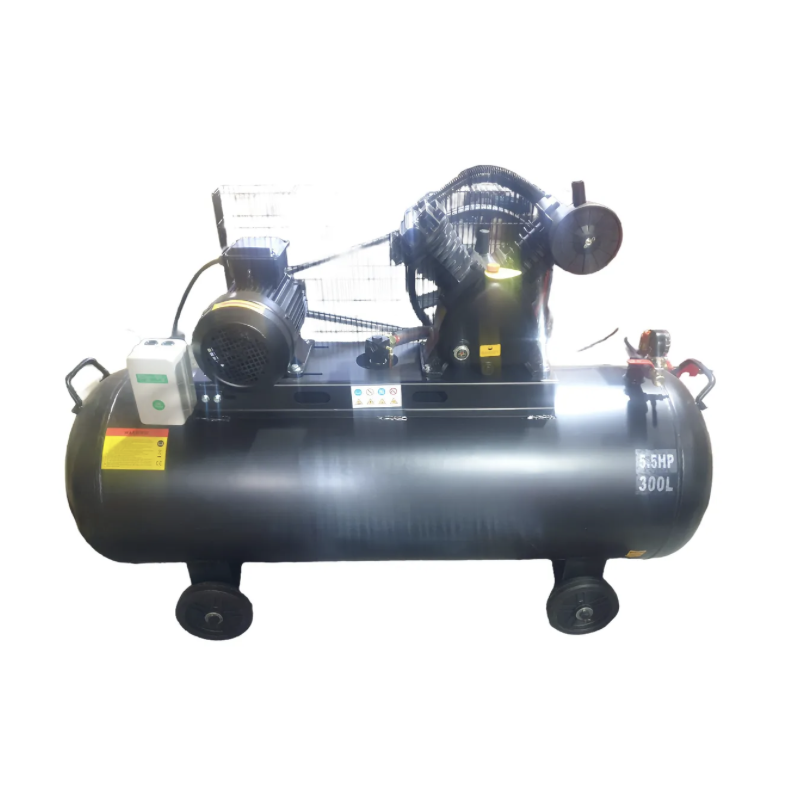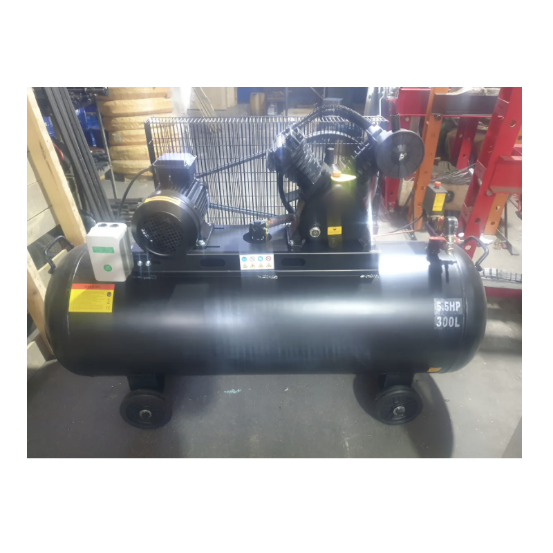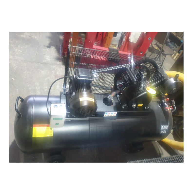 Compresor de aire eléctrico con motor trifásico de 4HP 380V y estaque con capacidad de 300 litros.
