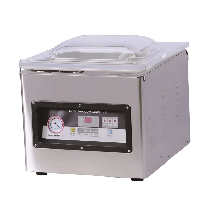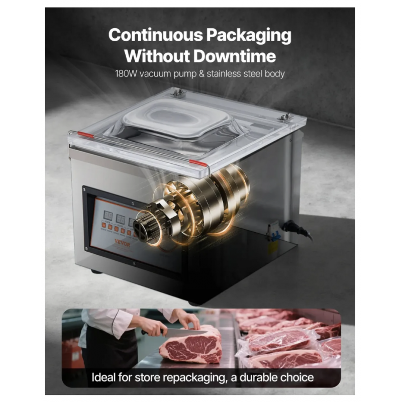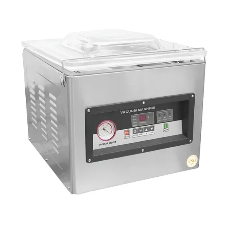 Máquina profesional de envasado al vacío semi automática, diseñada para negocios, locales gastronómicos y pequeñas industrias. Permite conservar alimentos, insumos o materiales mediante la eliminación del aire del empaque, extendiendo significativamente su vida útil. Fabricada en acero inoxidable de alta resistencia, cuenta con una campana amplia y un sistema de vacío eficiente y silencioso, ideal para uso continuo y profesional.