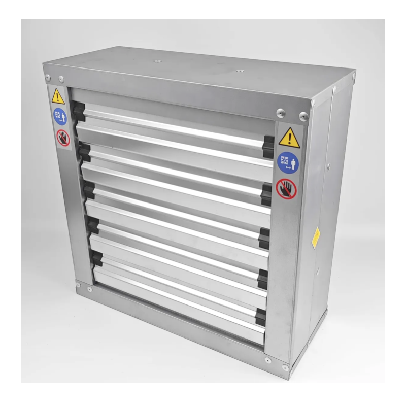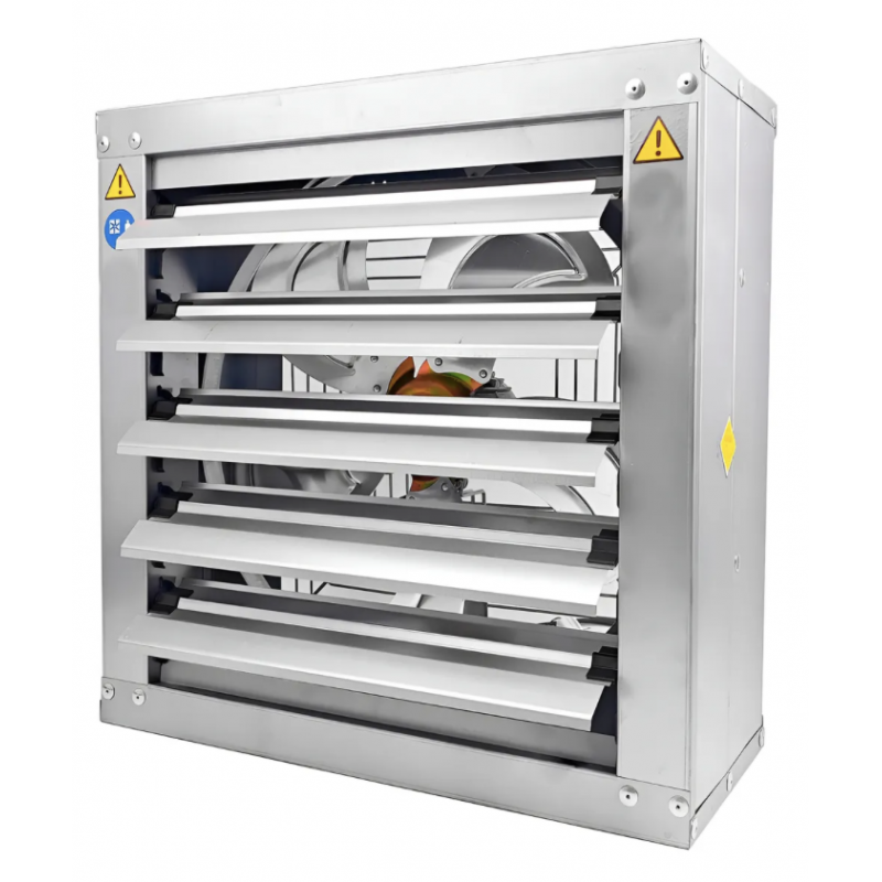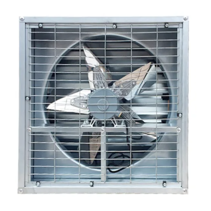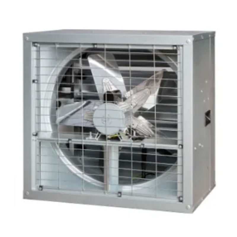 Extractor de aire industrial galvanizado de base cuadrada con celosías, 80cm 31,5 pulgadas de diámetro y con motor monofásico de 220V de 370W de potencia.