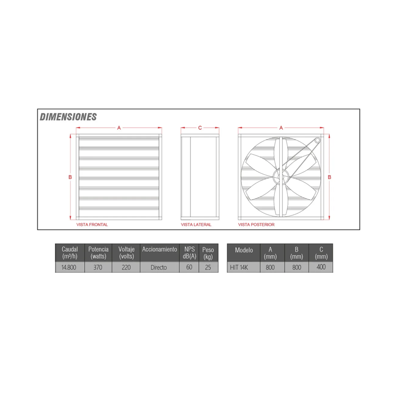 - Caudal de aire: 14.800 m³/h