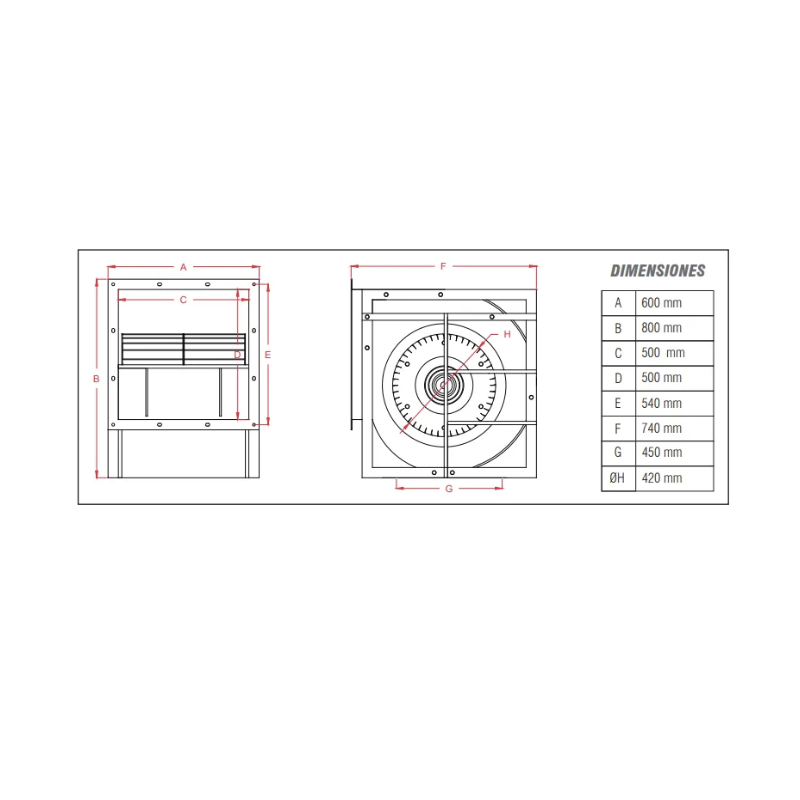 Este modelo incorpora un motor trifásico 380V / 50 Hz de 6 polos (960 RPM) y 6.0 kW de potencia, ideal para grandes sistemas HVAC, shafts de edificios, salas técnicas y unidades de climatización. Su rodete con álabes inclinados hacia adelante, equilibrado dinámicamente, permite mantener un flujo de aire potente y continuo. No es apto para extracción de grasa ni altas temperaturas. No se recomienda su uso en cocinas.