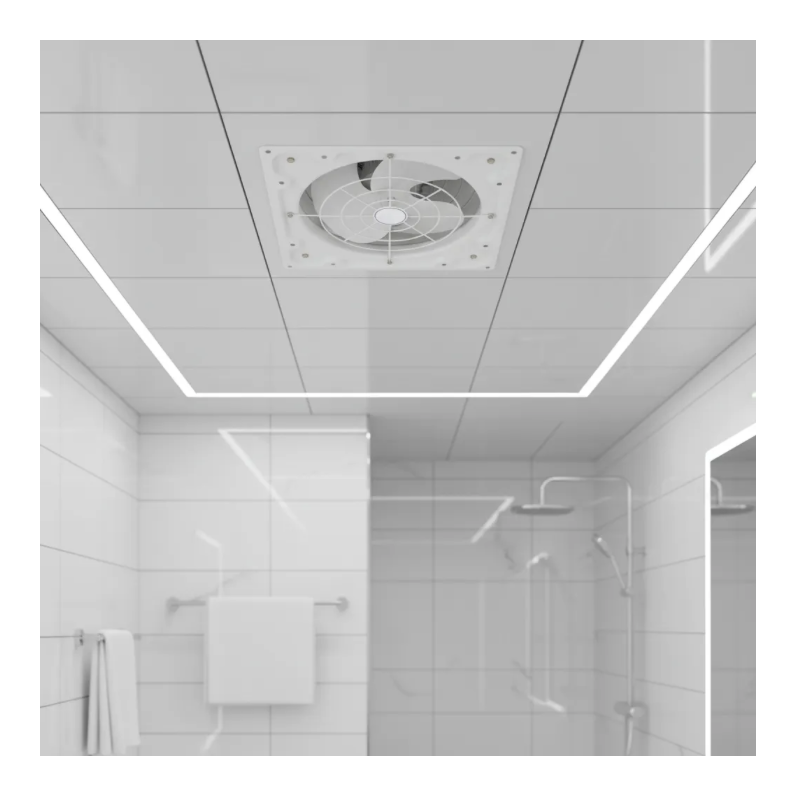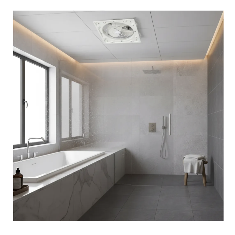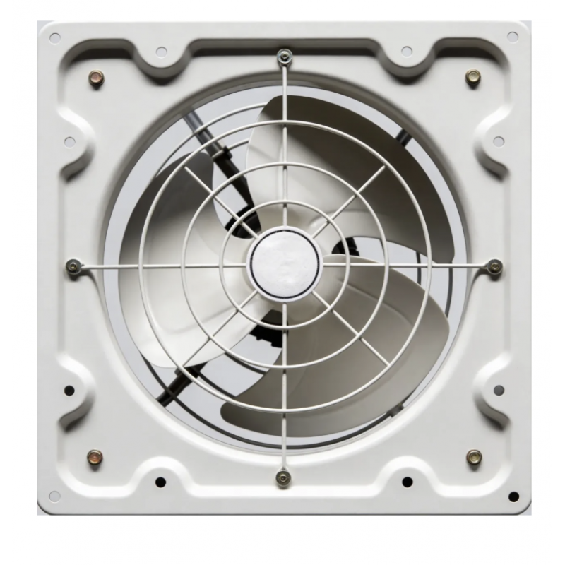 Extractor de aire industrial de base cuadrada con celosías, 45cm 18 pulgadas de diámetro y 320W de potencia..