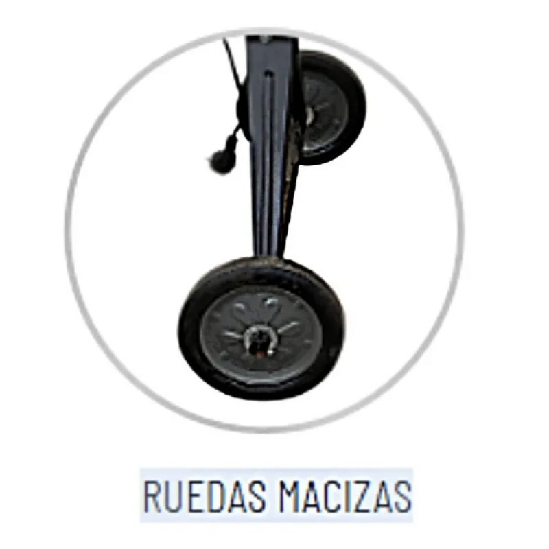Su diseño con trompo resistente y ruedas macizas permite un trabajo seguro y estable. La altura de descarga facilita el vertido del material, aumentando la eficiencia en obra.