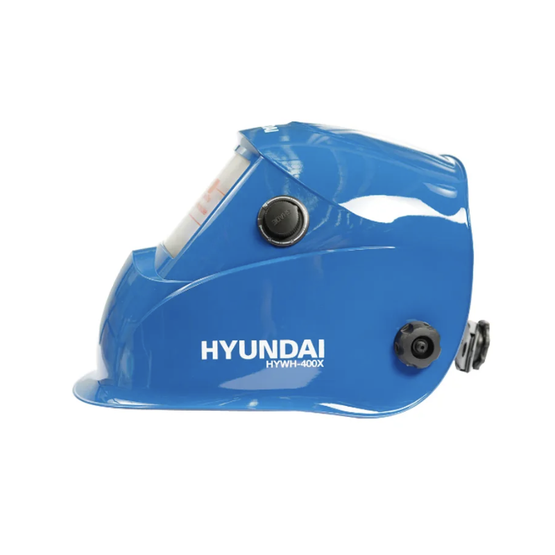 Mascara de soldar automatica Hyundai modelo WH-400X con oscurecimiento automatico mediante tecnologia fotosensible solar. Brinda proteccion ocular y facial frente a chispas, salpicaduras y radiacion durante procesos de soldadura. Ideal para trabajos MIG, TIG, MMA, entre otros.