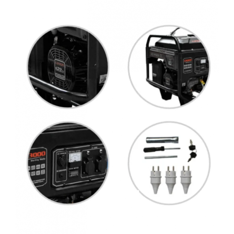 Generador robusto, compacto y versátil. Utiliza regulador automático de tensión (AVR) para la estabilidad del voltaje durante la carga, proporcionando una potencia suave, que impide que le afecten las fluctuaciones del voltaje.