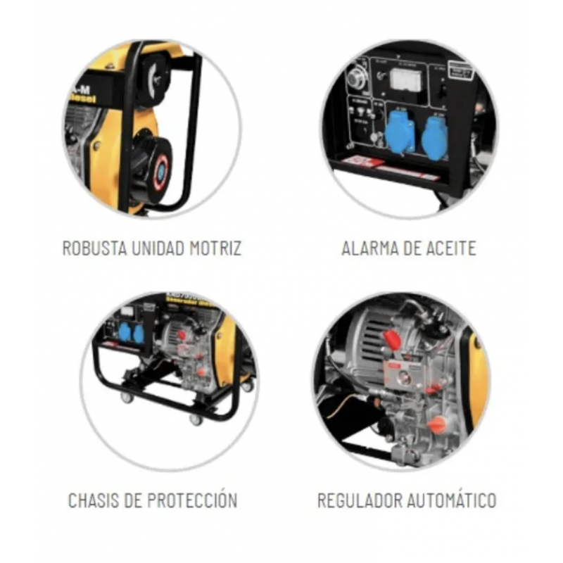 Su sistema de partida eléctrica facilita la operación, mientras que su chasis de protección brinda resistencia y estabilidad. Ideal para aplicaciones en construcción, industrias, talleres y emergencias.