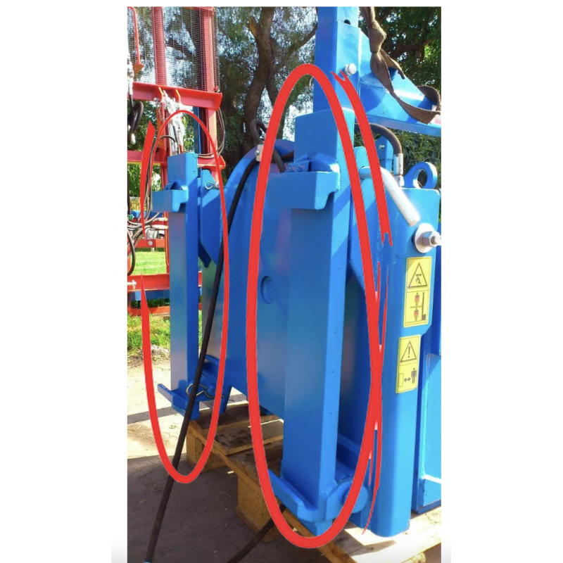 Kit de 2 soportes para conectar el volteador de bins a grúa horquilla marca Tecnoagri.