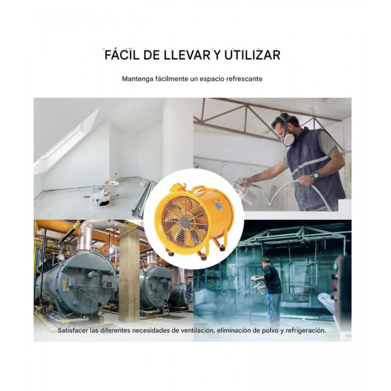 - Aplicaciones versátiles: Adecuado como extractor de aire para ventilación, eliminación de polvo y refrigeración en diversos entornos, incluso en espacios confinados. Diseñado para abordar desafíos en diversos entornos de trabajo, como almacenes, talleres, espacios de arrastre y sótanos, ofreciendo una solución de ventilación integral.