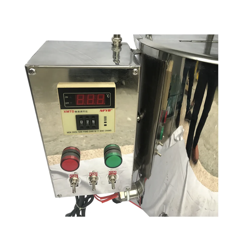 Máquina de llenado de cera de 15 litros con calentamiento y mezcla con doble camisa de acero inoxidable.