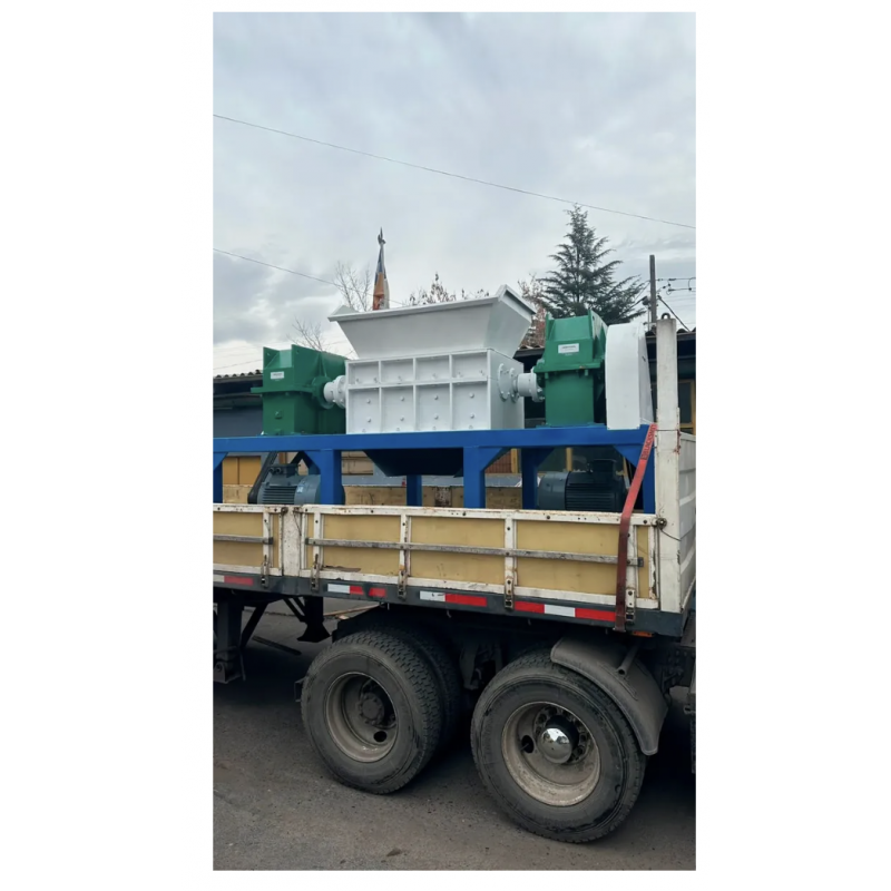 La trituradora de neumaticos de 100HP es una maquina industrial diseñada para el reciclaje y reducción de volumen de neumáticos usados y otros materiales de alta resistencia. Su sistema de trituración de doble eje, junto con cuchillas de acero de alta dureza, permite un procesamiento eficiente y continuo en operaciones industriales exigentes.