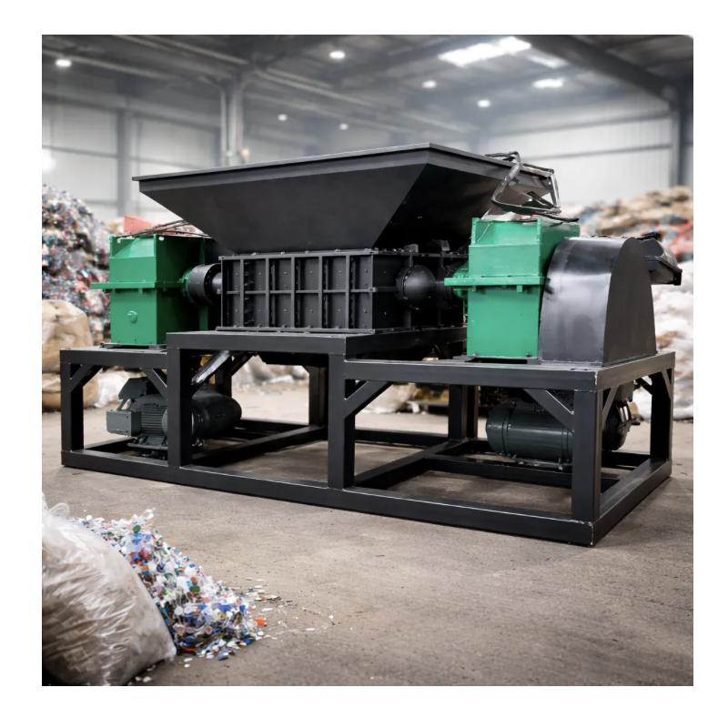 - Trituradora industrial de doble eje para reciclaje de neumáticos.