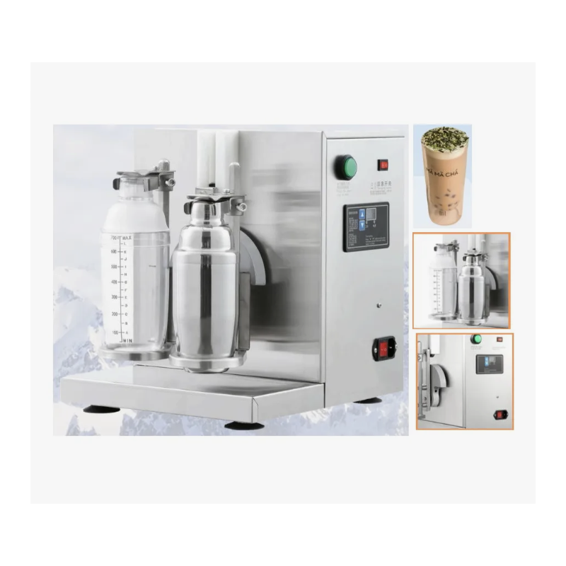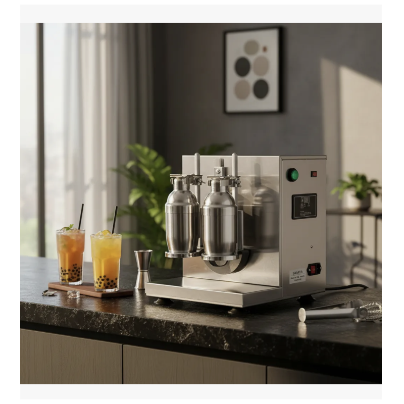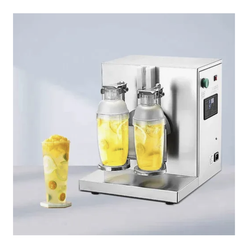 Coctelera eléctrica doble para té de leche, bubble tea y milkshakes. Ideal para negocios de bebidas, cafeterías y locales de té. Esta coctelera automática permite agitar de forma uniforme y programable, logrando texturas perfectas en cada preparación. Cuenta con dos soportes independientes que permiten preparar dos bebidas al mismo tiempo, aumentando la eficiencia y reduciendo el esfuerzo manual.