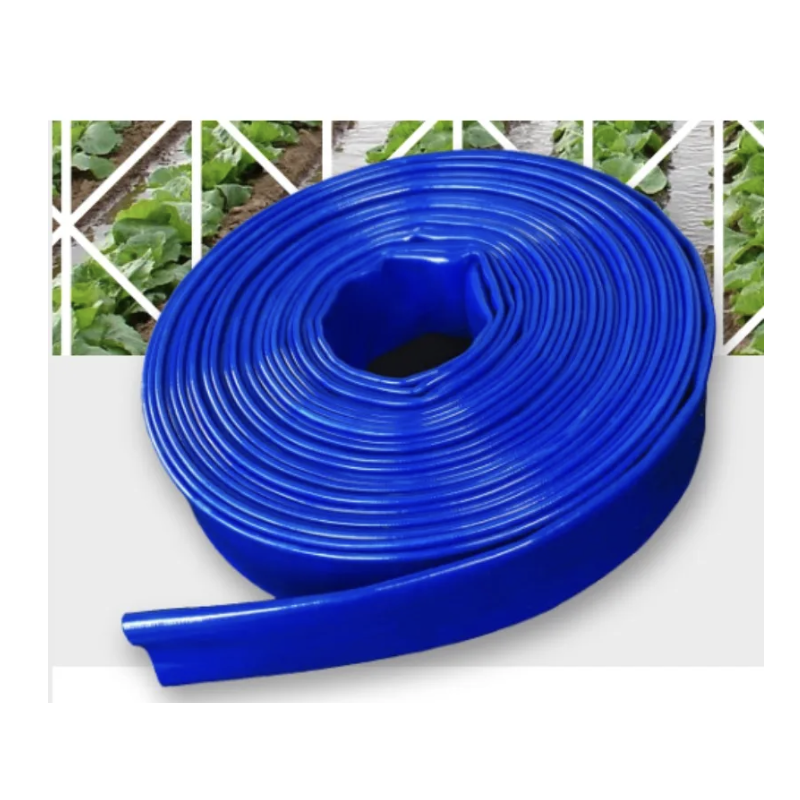Manguera plana flexible de PVC de tres capas reforzada con tejidos de poliéster para alta presión. Alta resistencia al desgaste.