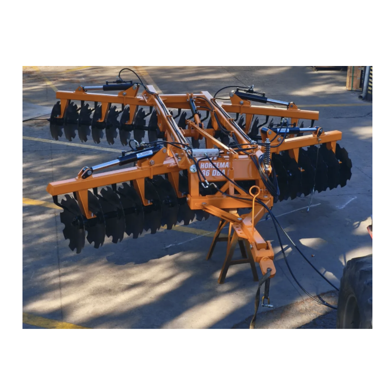 Rastra de tiro hidráulica plegable de 4 metros con 36 discos de 24" dentados para tractores de 140 a 180HP marca HORSEMAN.