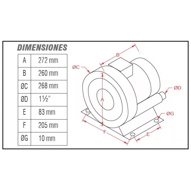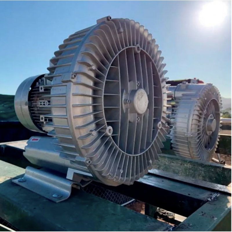 - Soplador de canal lateral fabricado en aleación de aluminio y ensamblado sobre motor de inducción con aislación clase